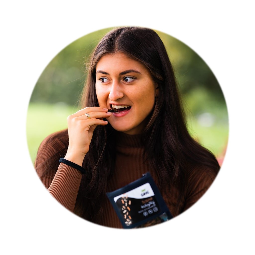 | Alergeny: | Sezam. Může obsahovat stopy obilovin obsahující lepek. Konzumace hmyzu (obsahuje chitin) může u lidí alergických na měkkýše, korýše a roztoče vyvolat alergickou reakci. |